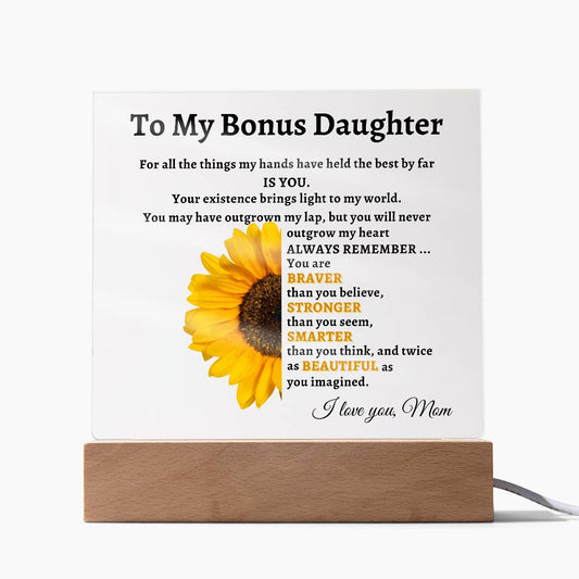 To My Bonus Daughter- Mom Sunflower Acrylic LED Plaque Gift