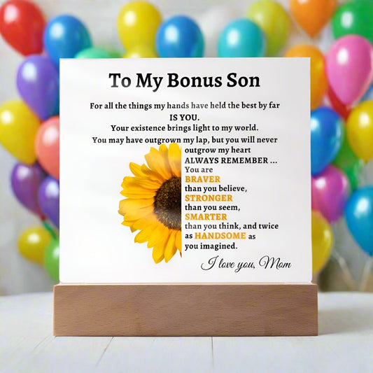 To My Bonus Son- Mom Sunflower Acrylic LED Plaque Gift