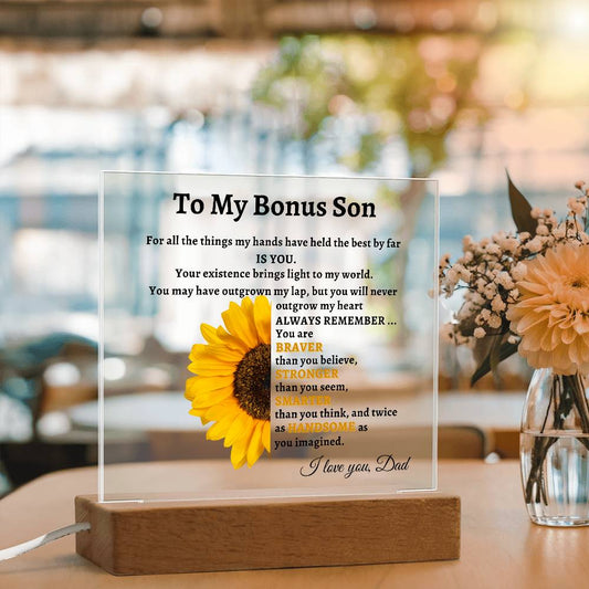 To My Bonus Son- Dad Sunflower Acrylic LED Plaque Gift