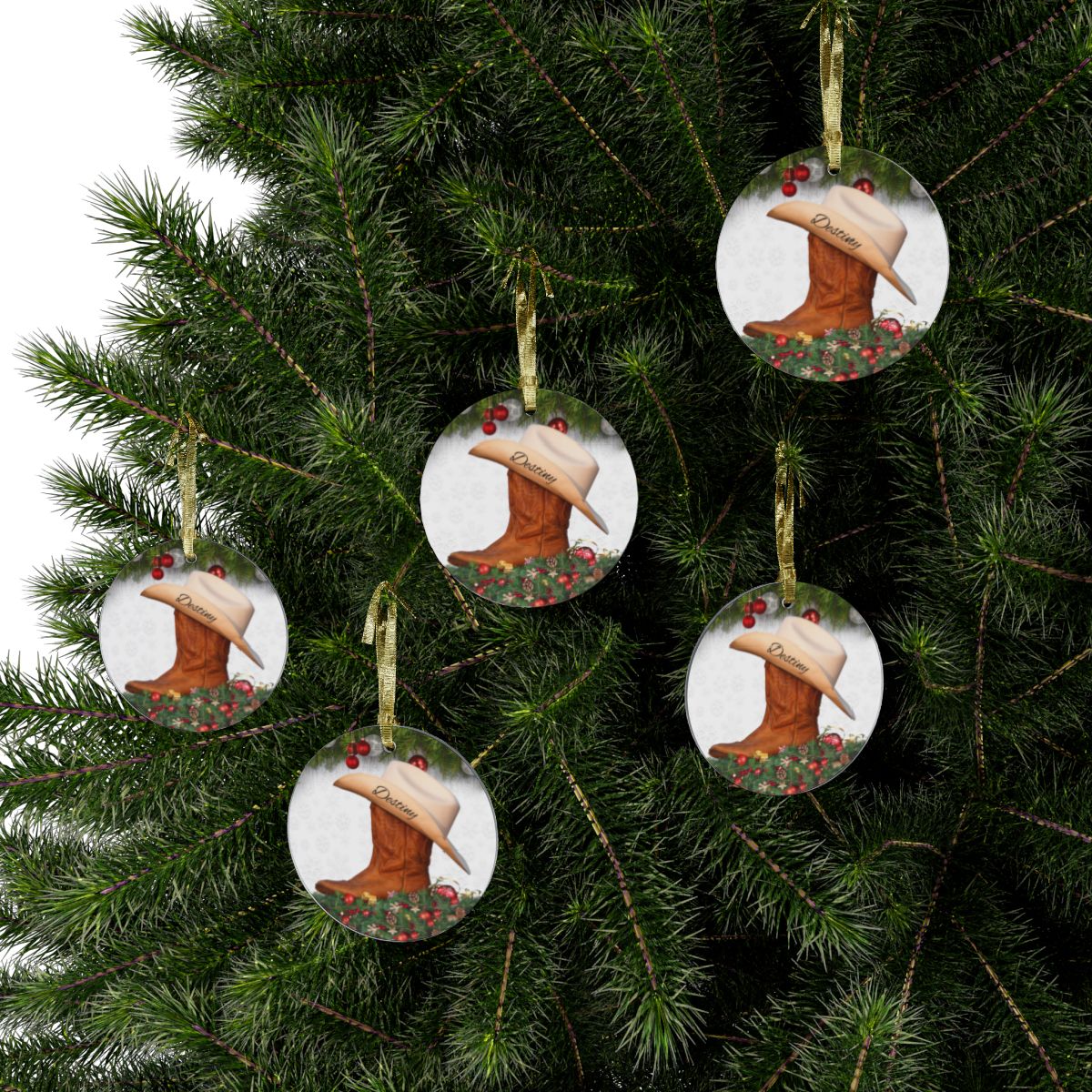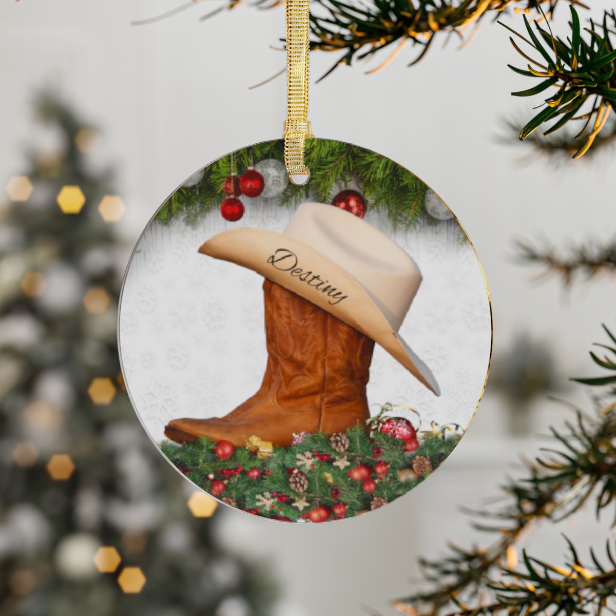 Personalized- Holiday Cowgirl Acrylic Ornament