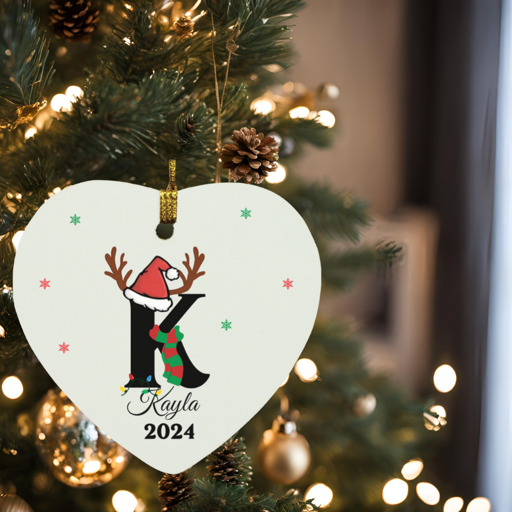 Personalized Initial Name Heart Christmas Ornament