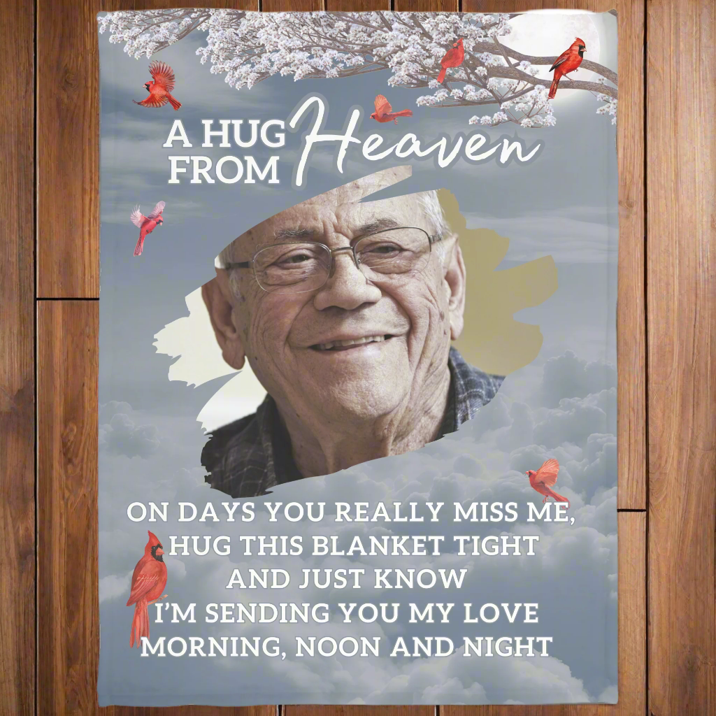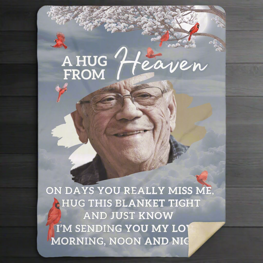 Personalized Memorial Photo Fleece Blanket- A Hug from Heaven