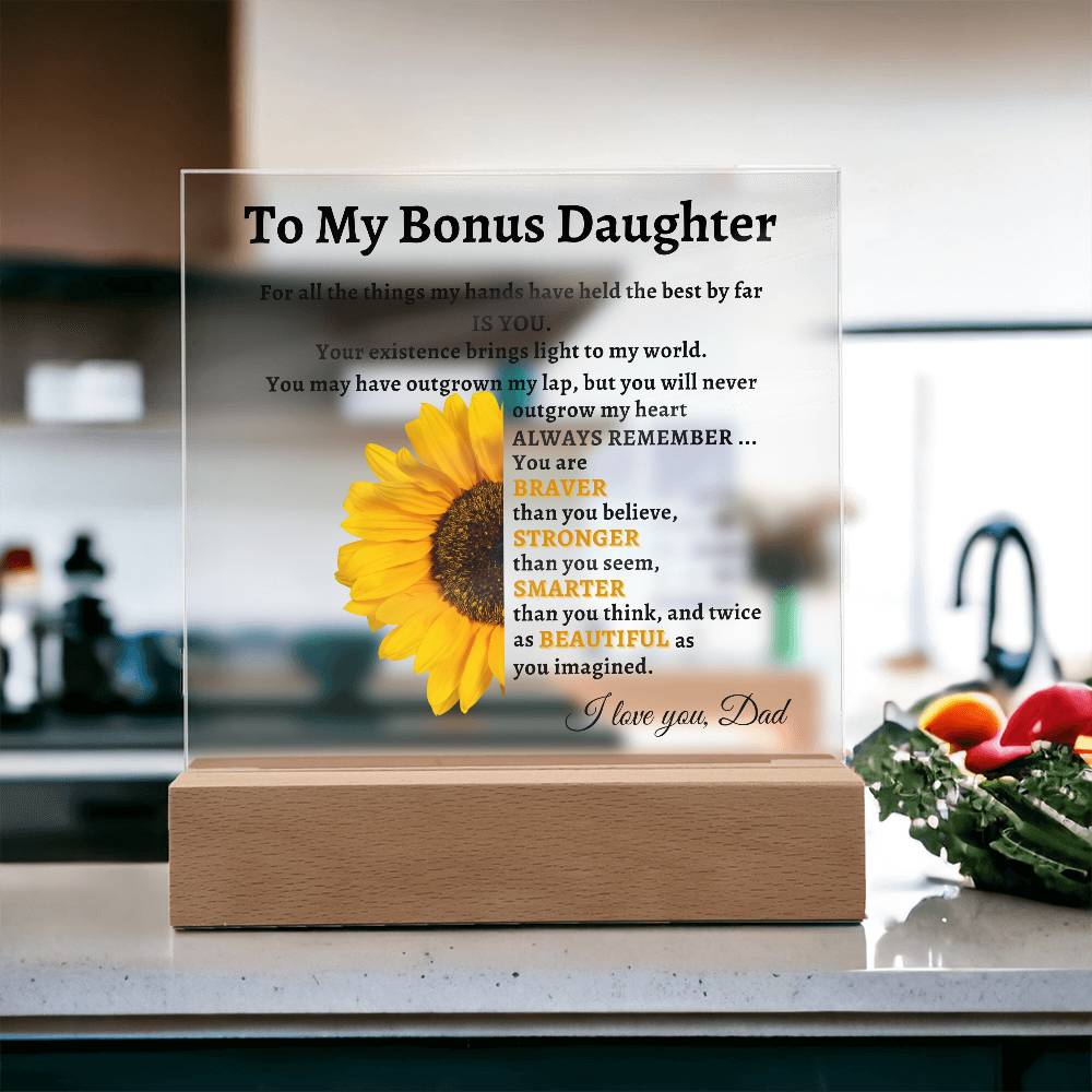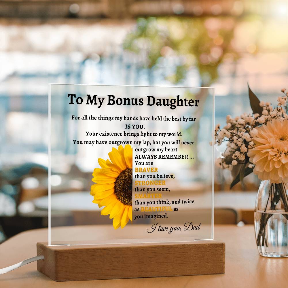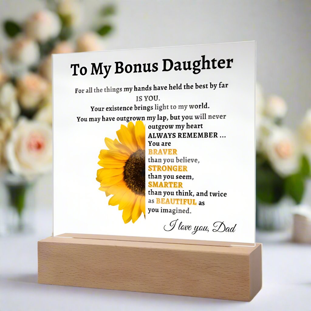 To My Bonus Daughter- Dad Sunflower Acrylic LED Plaque Gift