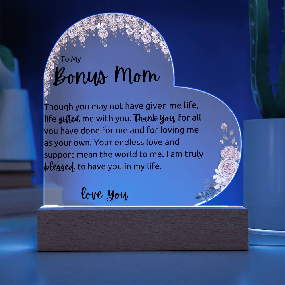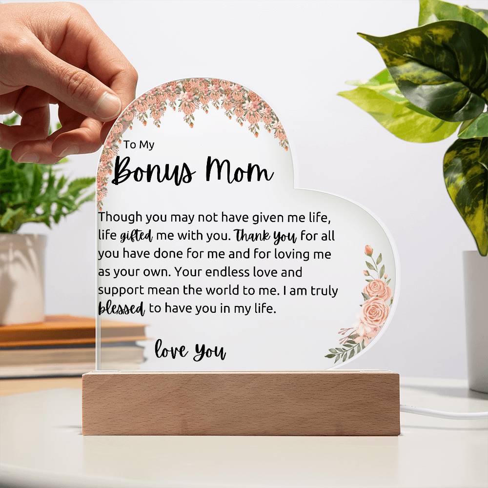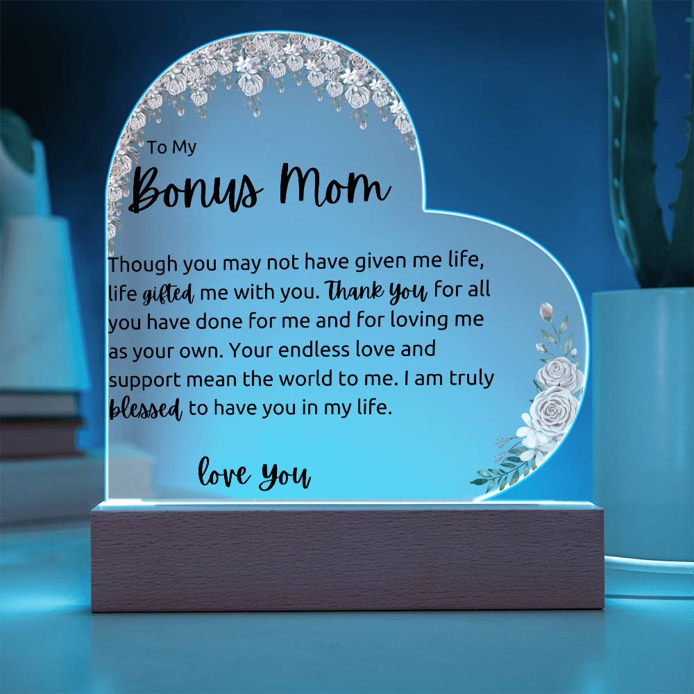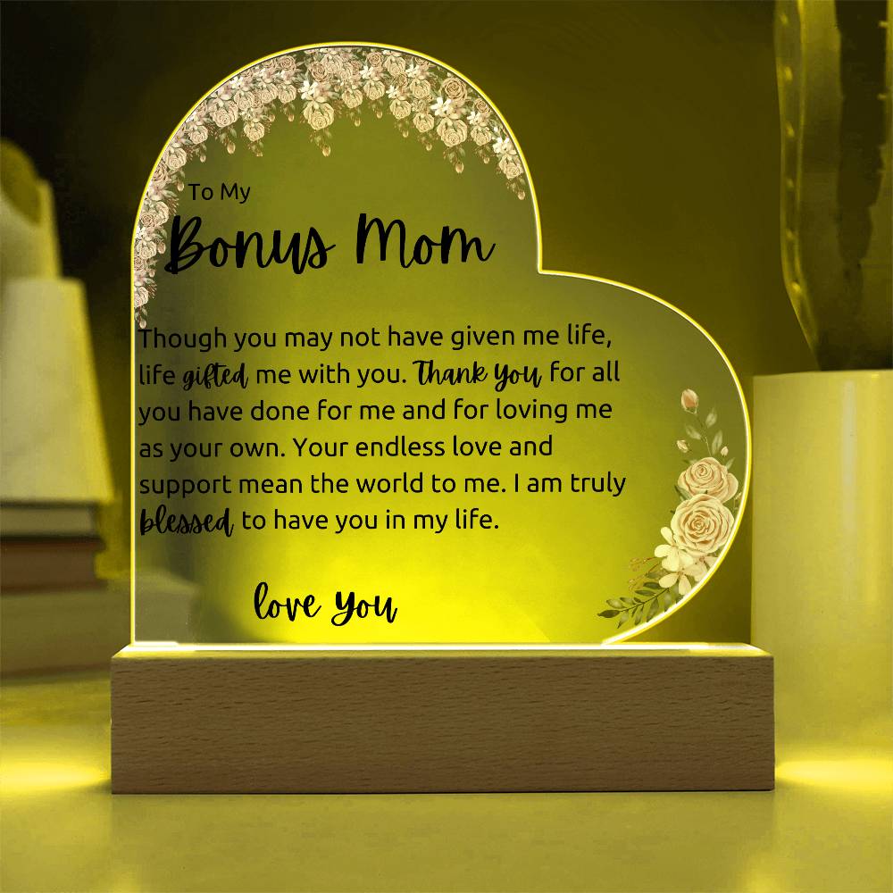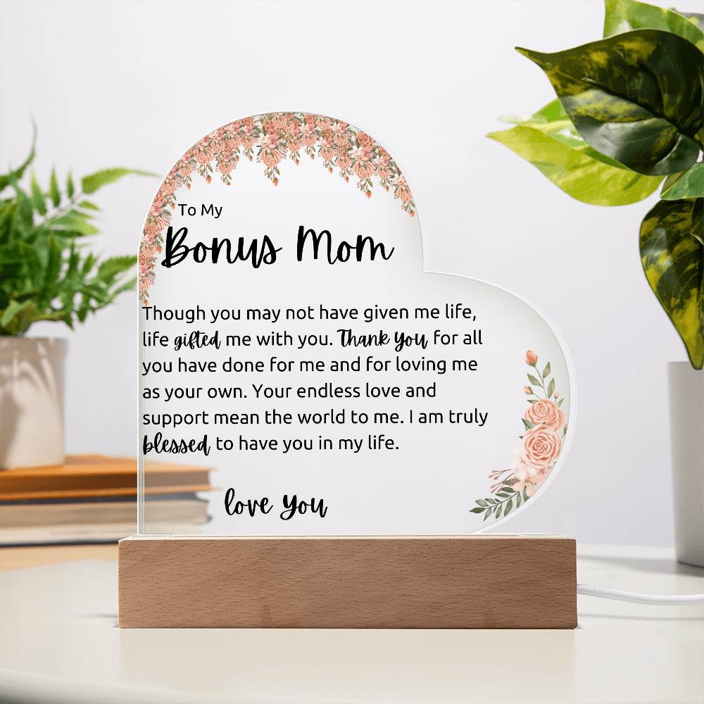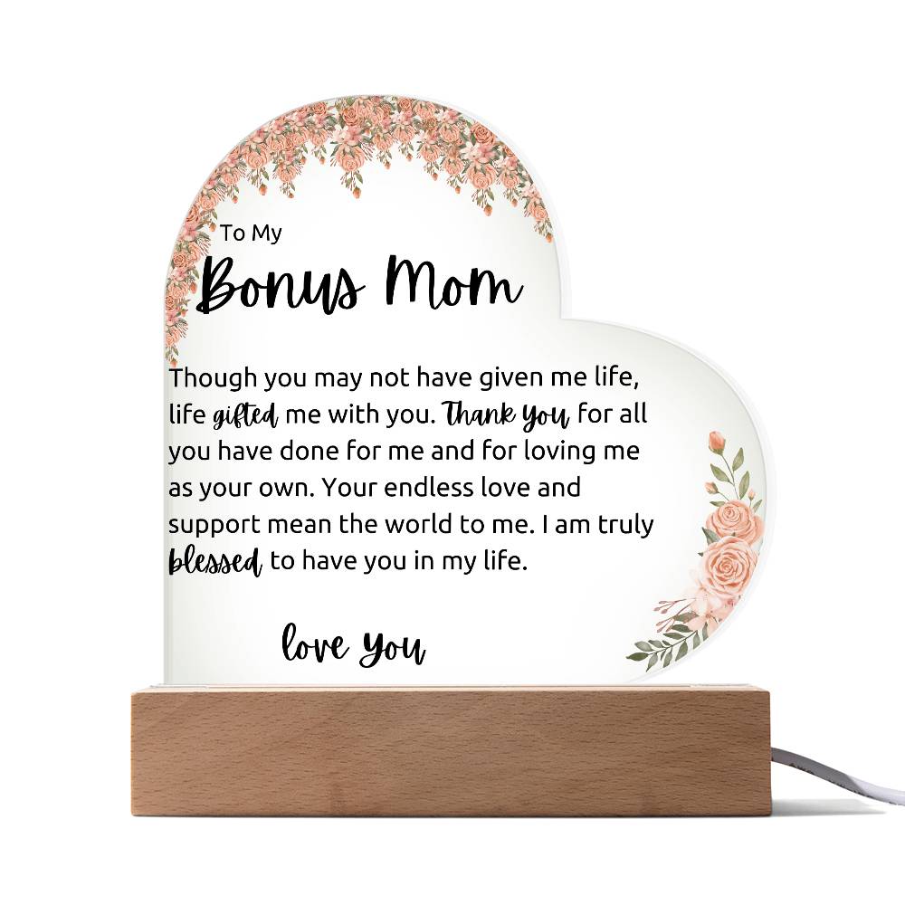 To My Bonus Mom Acrylic LED Plaque Gift- Blk Font