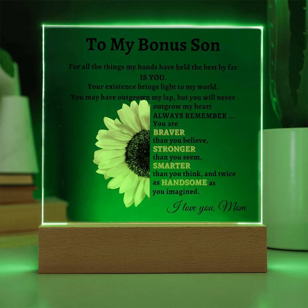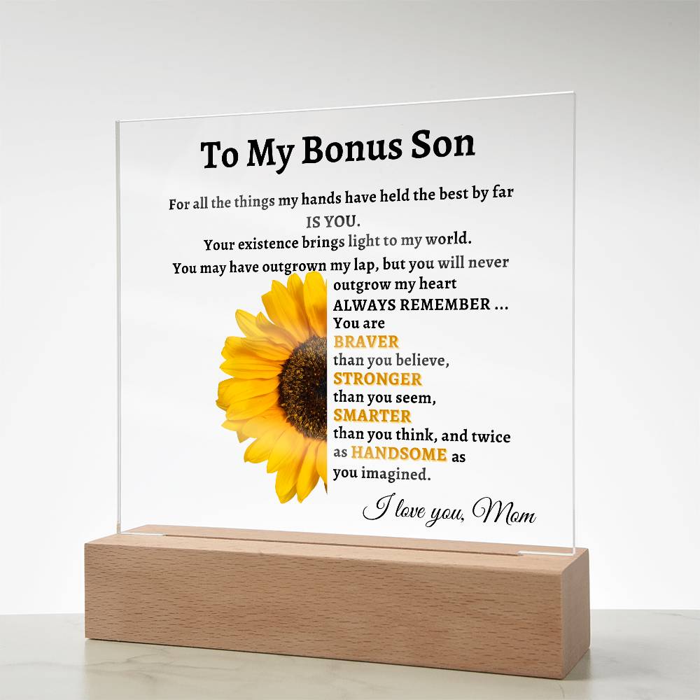 To My Bonus Son- Mom Sunflower Acrylic LED Plaque Gift